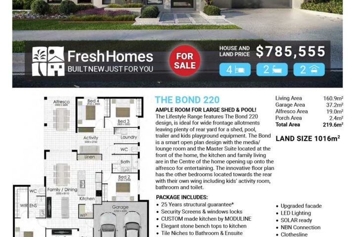 This exceptional house & land package showcases our superior Bond design, offering striking street appeal with a wide frontage. The thoughtfully designed layout places the media/lounge room at the front of the home, while the centrally located kitchen and family living area seamlessly open onto the alfresco—perfect for relaxed entertaining.