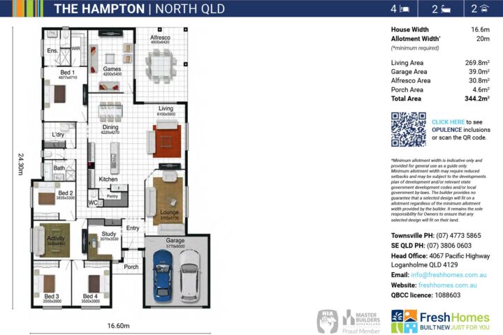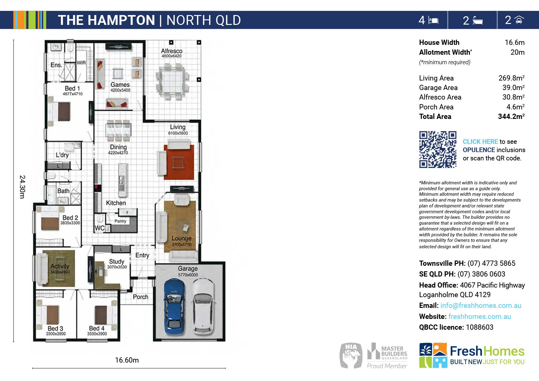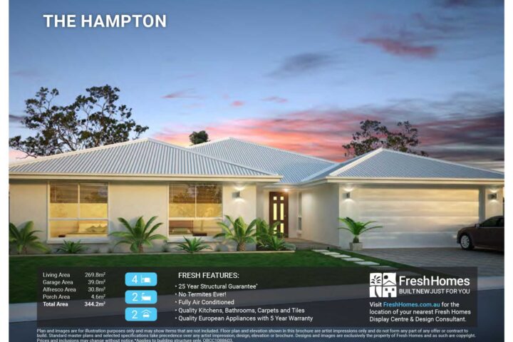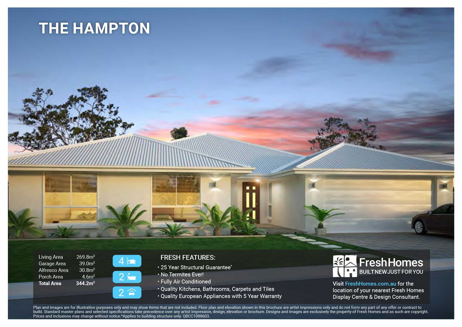 Plan and images are for illustration purposes only and may show items that are not included. Floor plan and elevation shown in this brochure are artist impressions only and do not form any part of any offer or contract to build. Standard master plans and selected specifications take precedence over any artist impression, design, elevation or brochure. Designs and images are exclusively the property of Fresh Homes and as such are copyright. Prices and inclusions may change without notice.*Applies to building structure only. QBCC1088603.