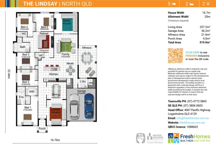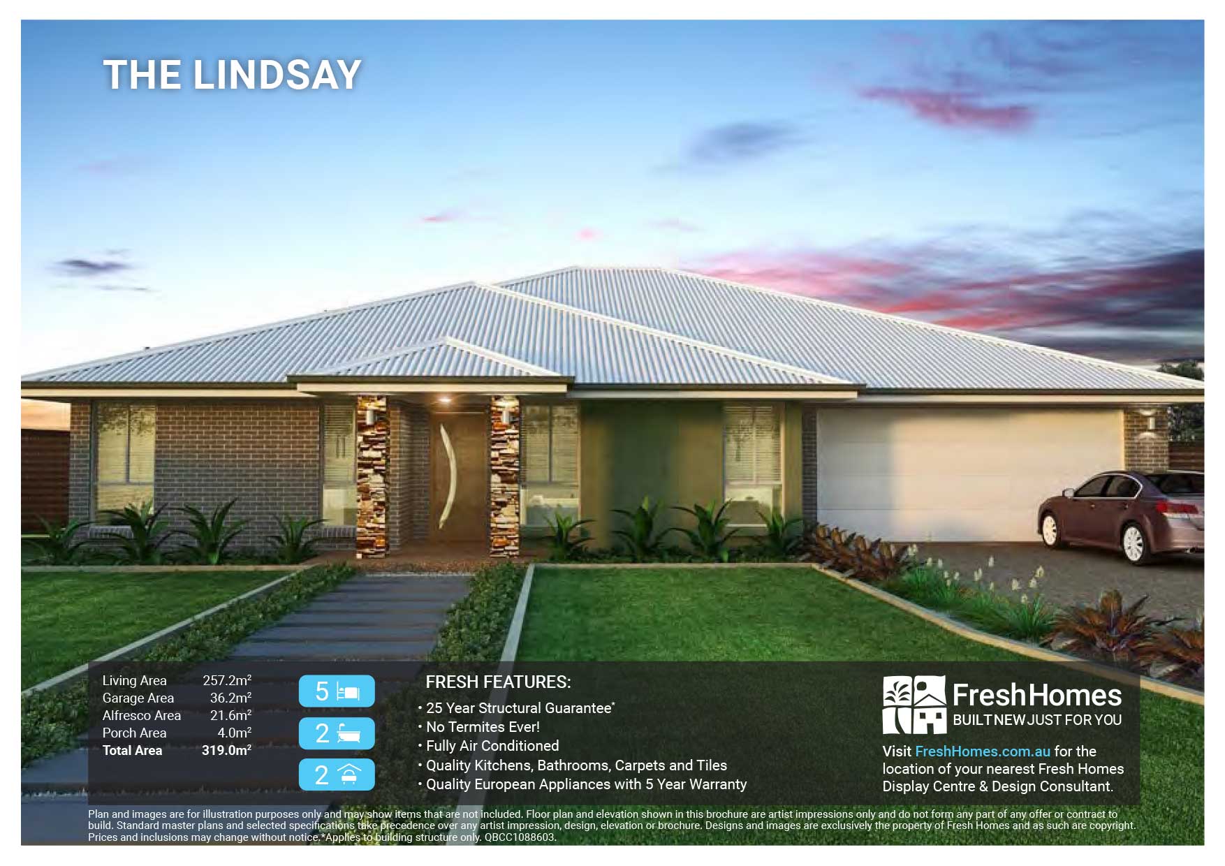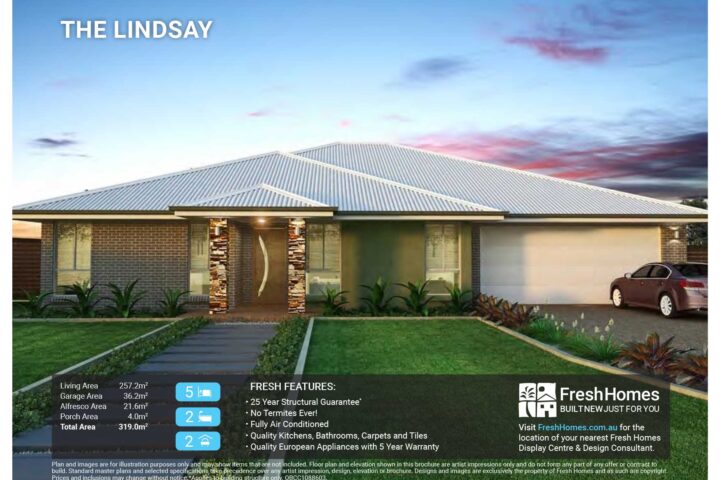 Plan and images are for illustration purposes only and may show items that are not included. Floor plan and elevation shown in this brochure are artist impressions only and do not form any part of any offer or contract to build. Standard master plans and selected specifications take precedence over any artist impression, design, elevation or brochure. Designs and images are exclusively the property of Fresh Homes and as such are copyright. Prices and inclusions may change without notice.*Applies to building structure only. QBCC1088603.