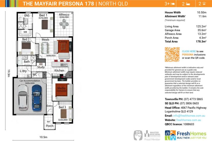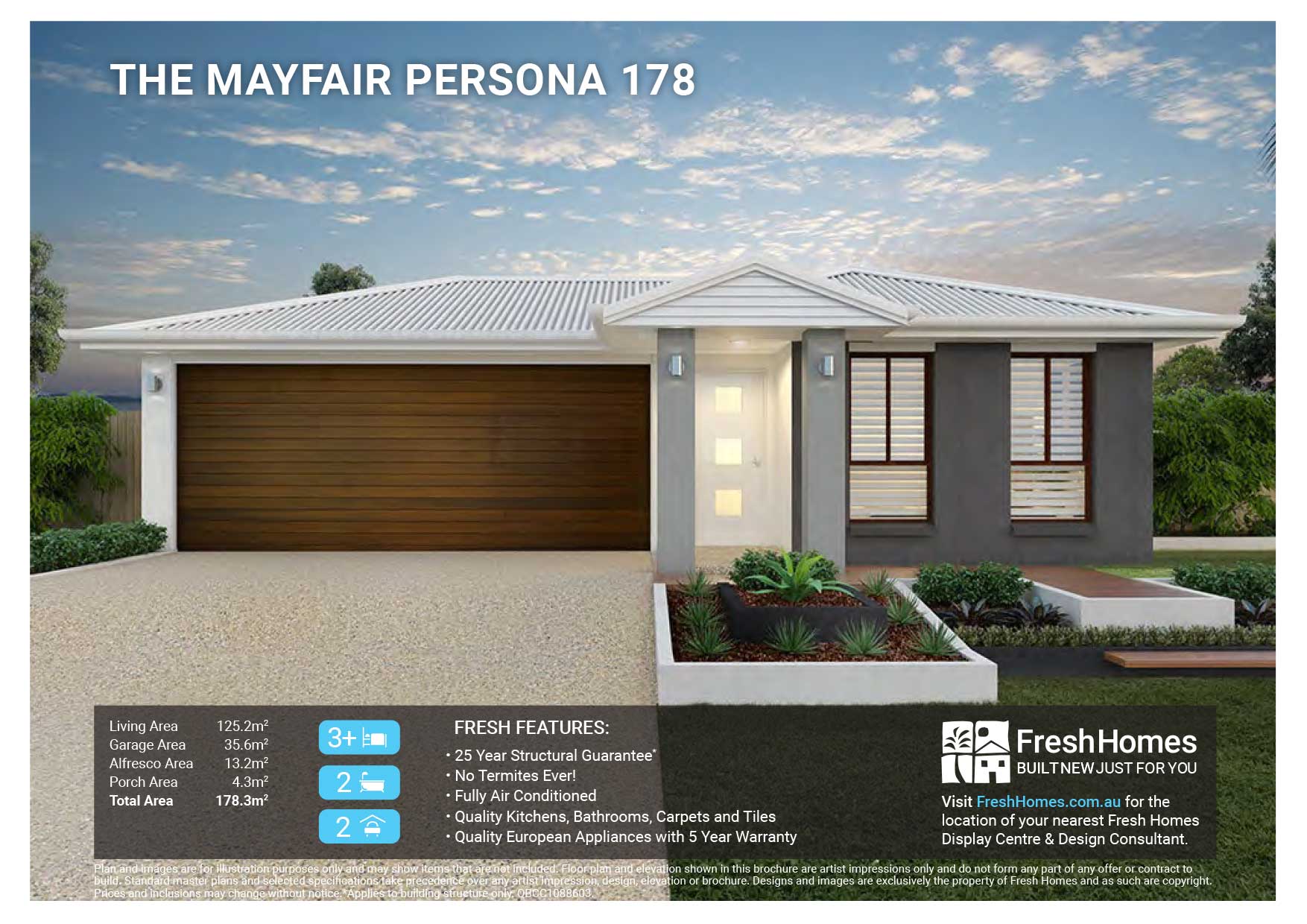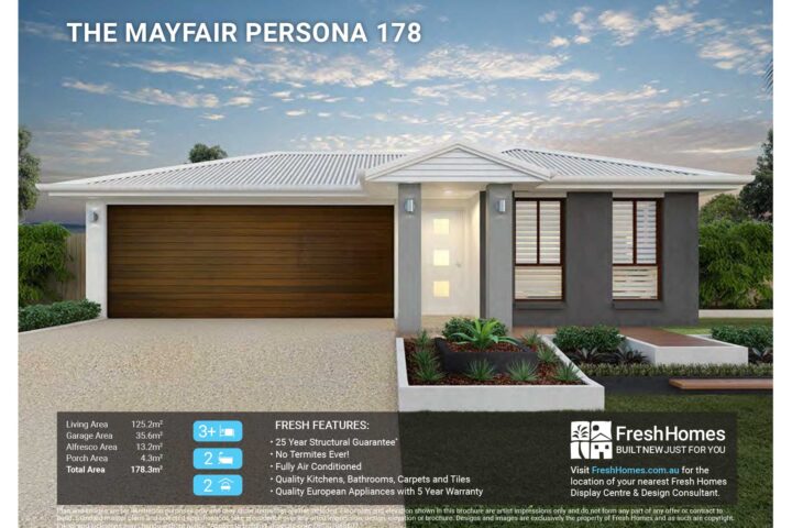 Plan and images are for illustration purposes only and may show items that are not included. Floor plan and elevation shown in this brochure are artist impressions only and do not form any part of any offer or contract to build. Standard master plans and selected specifications take precedence over any artist impression, design, elevation or brochure. Designs and images are exclusively the property of Fresh Homes and as such are copyright. Prices and inclusions may change without notice.*Applies to building structure only. QBCC1088603.