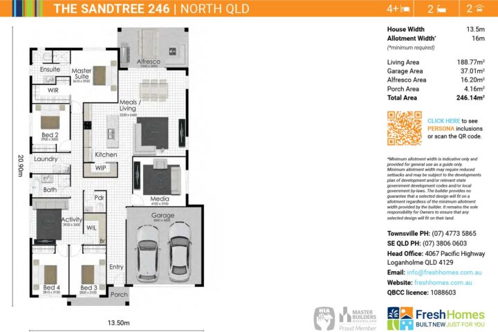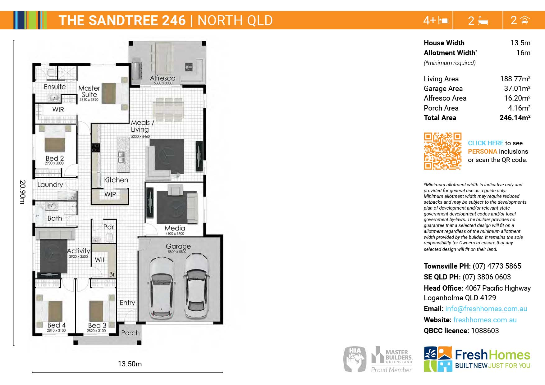 Plan and images are for illustration purposes only and may show items that are not included. Floor plan and elevation shown in this brochure are artist impressions only and do not form any part of any offer or contract to build. Standard master plans and selected specifications take precedence over any artist impression, design, elevation or brochure. Designs and images are exclusively the property of Fresh Homes and as such are copyright. Prices and inclusions may change without notice.*Applies to building structure only. QBCC1088603.